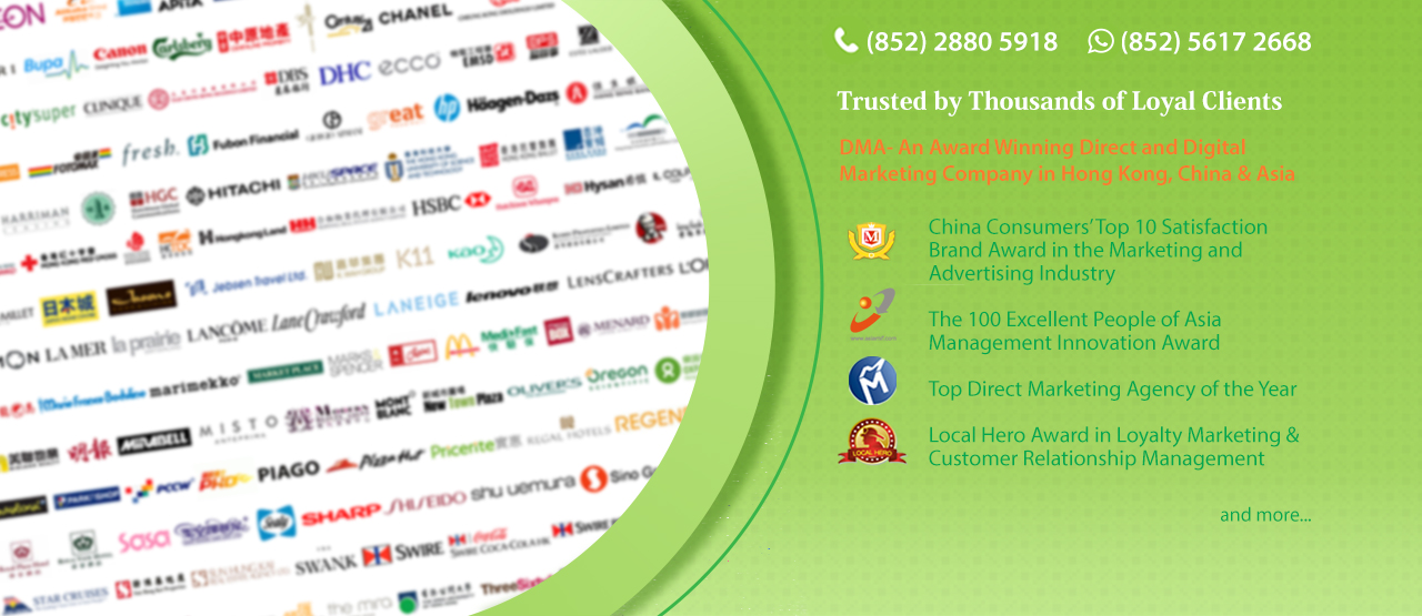 As the leading Data Driven Marketing expert in Asia, DMA offers comprehensive, effective and responsive target acquisition solutions, customer relationship and loyalty marketing solutions, online and digital marketing solutions as well as integrated and supporting marketing solutions.